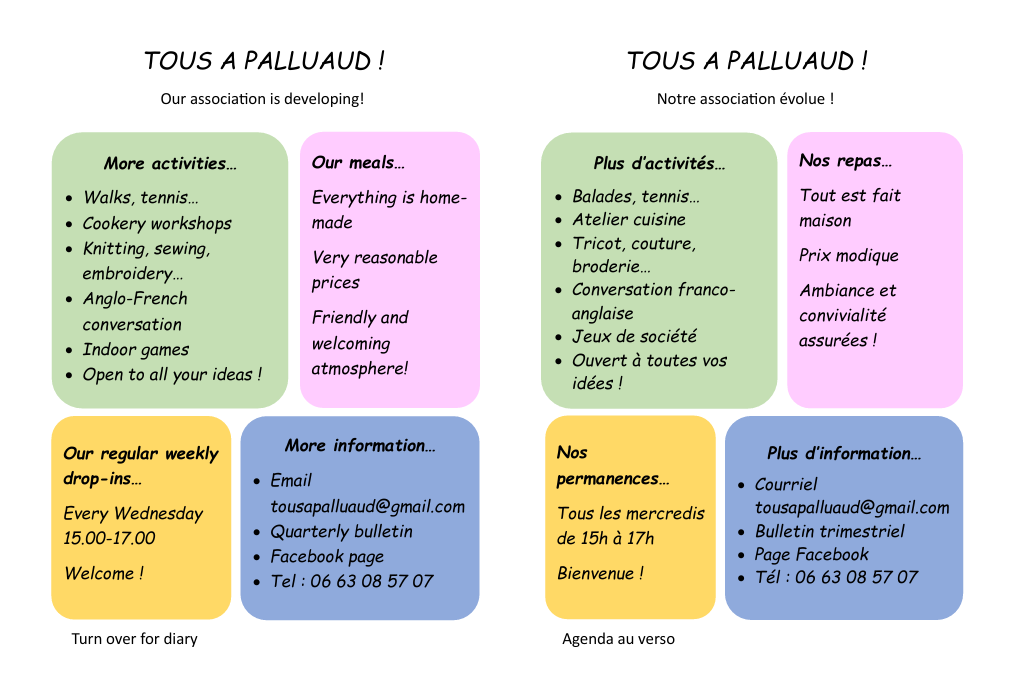 Plusieurs associations animent la vie sociale de la commune, comme l’association Fils et Fuseaux qui organise son « Couvige » biennal de dentellières, l’association de foot en coopération avec Saint Séverin, la société de chasse, « Les Bons Vivants » (danse), « Palluaud Temps Libre » et le comité de fêtes.