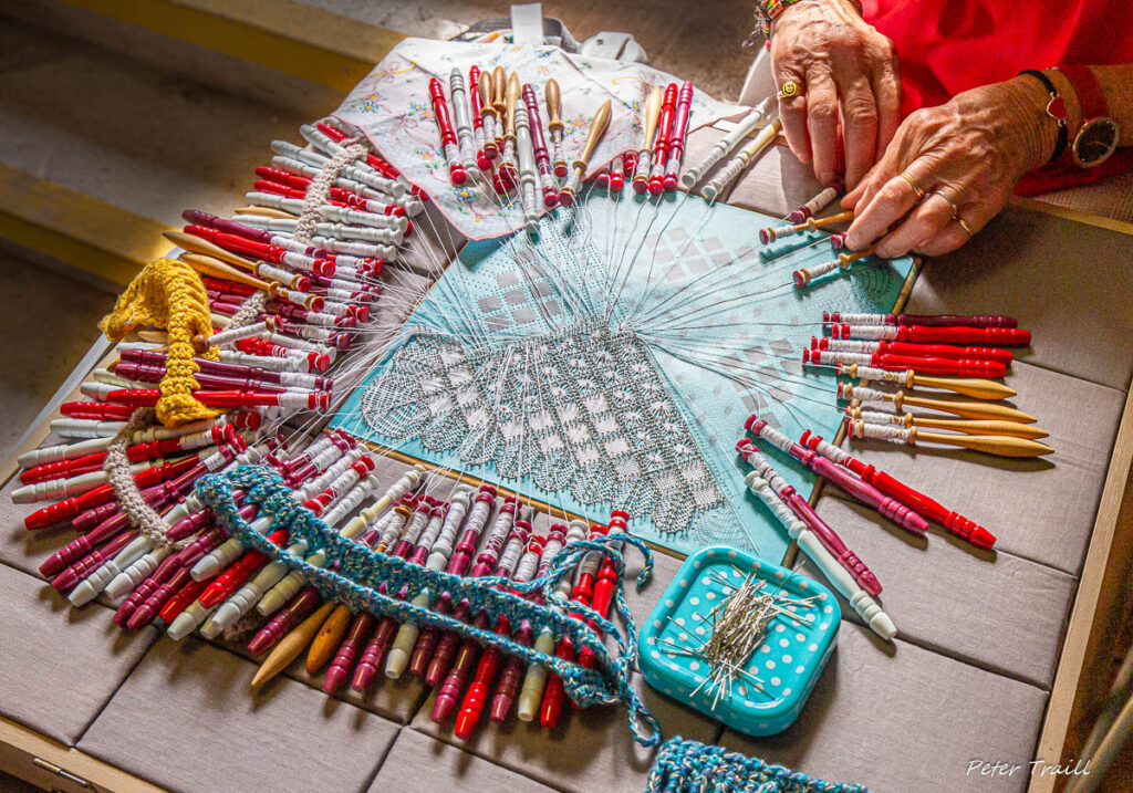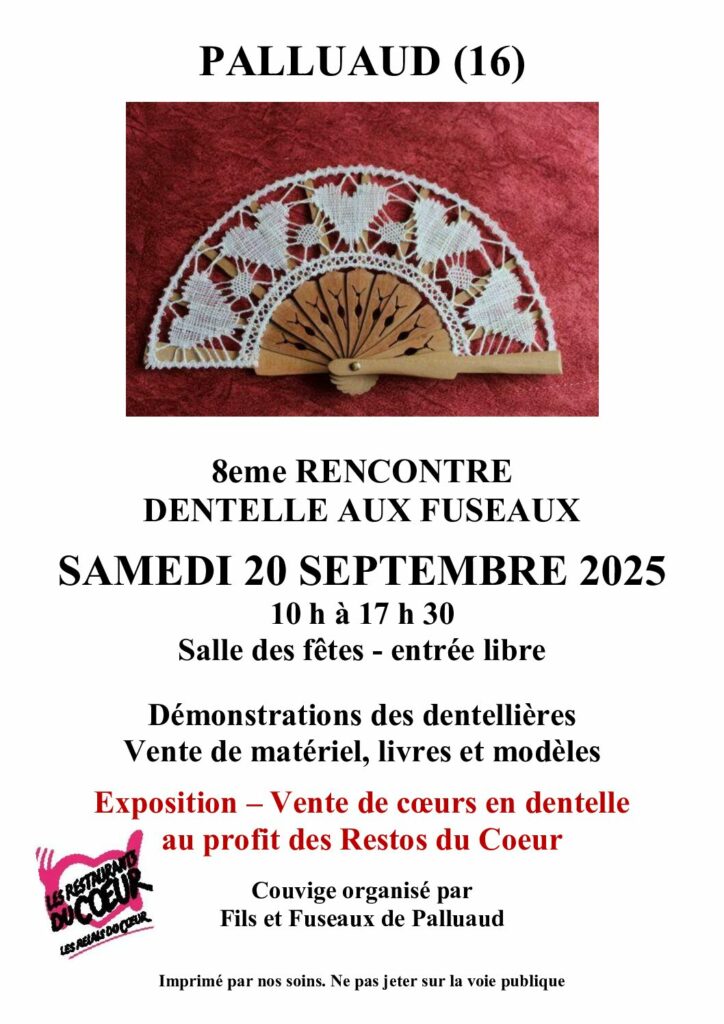 La 8ème rencontre de dentellières au fuseau de Palluaud a réuni, au coeur du village, 190 dentellières, des artisans du verre et du bois et des marchands de fils et de matériel.